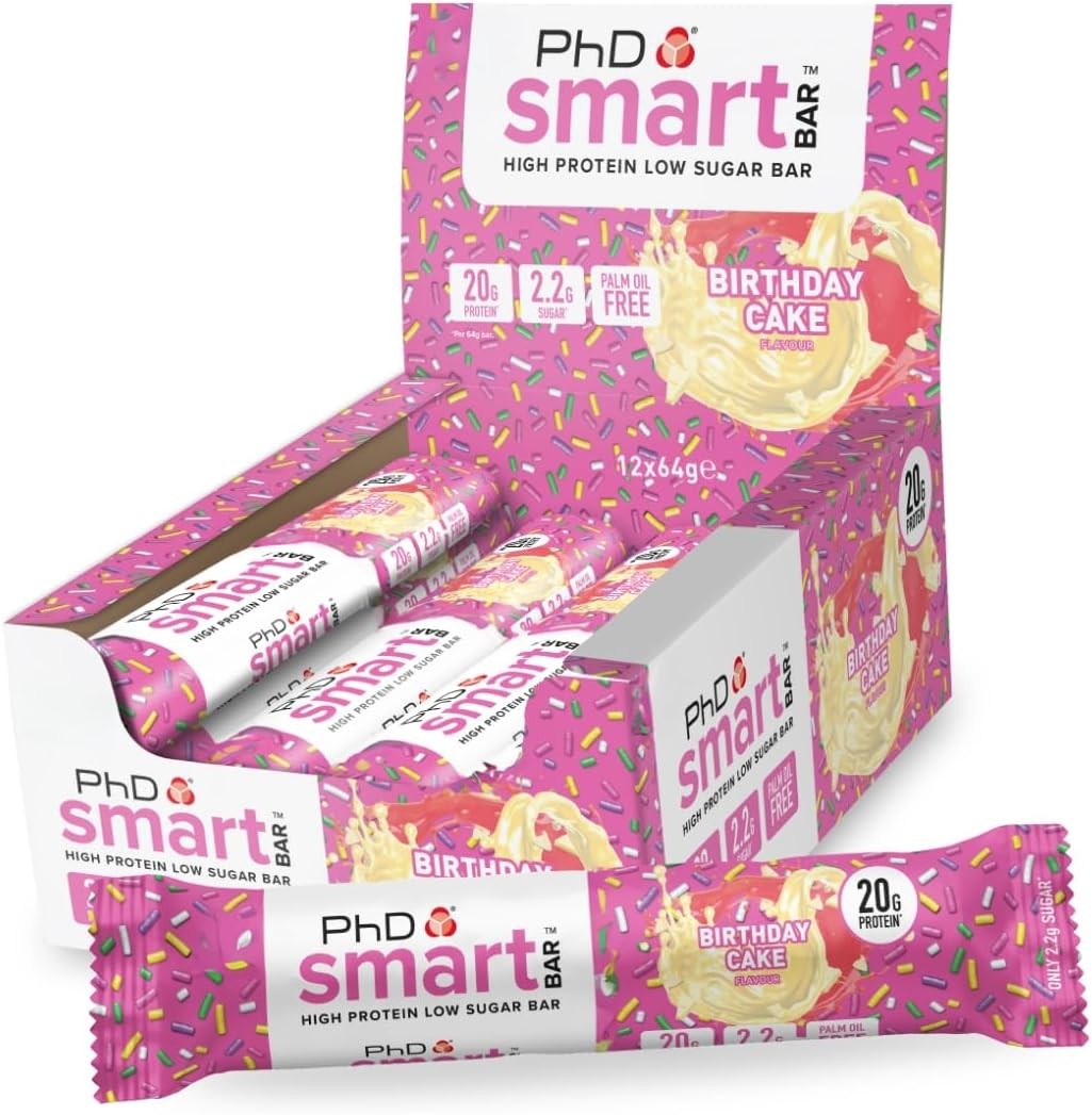 PhD Nutrition Smart Protein Bar, High Protein Low Sugar Protein Snacks, Birthda