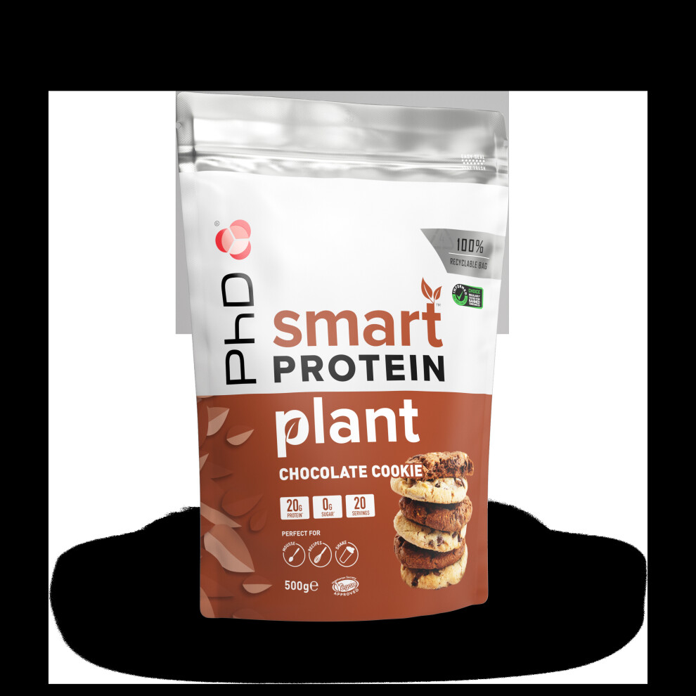 Phd Smart Plant, High Protein Vegan Shake, Ideal for Shakes, Baking and Deserts, Chocolate Cookie Flavour, 20 Servings per 500 g Bag