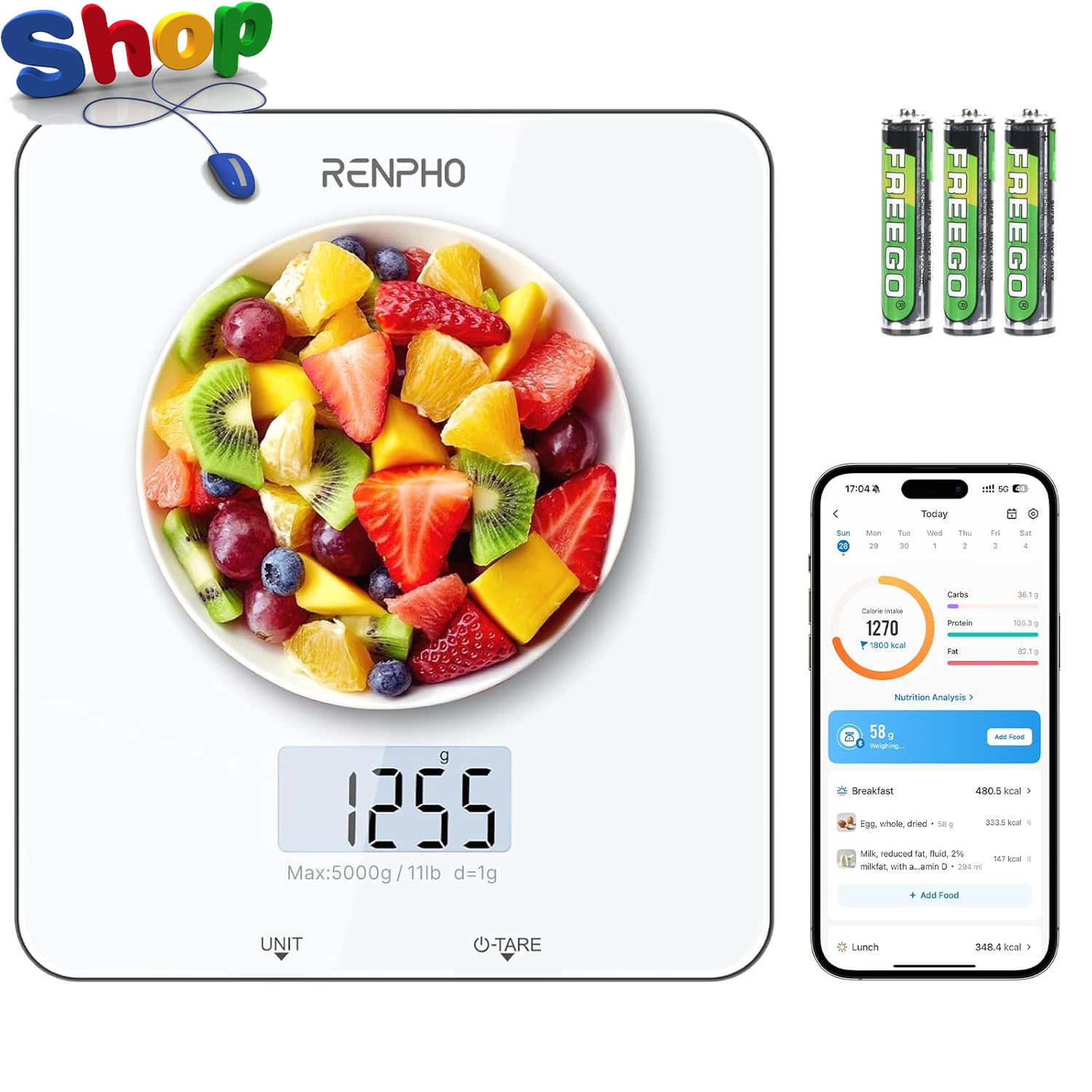 RENPHO Kitchen Scales for Accuracy Measurements, Smart Food Scales with App Food Database Nutritional Calculator, Food Weighing Scales for Baking, Weight Loss, Calorie Counting, 5 Units Conversion