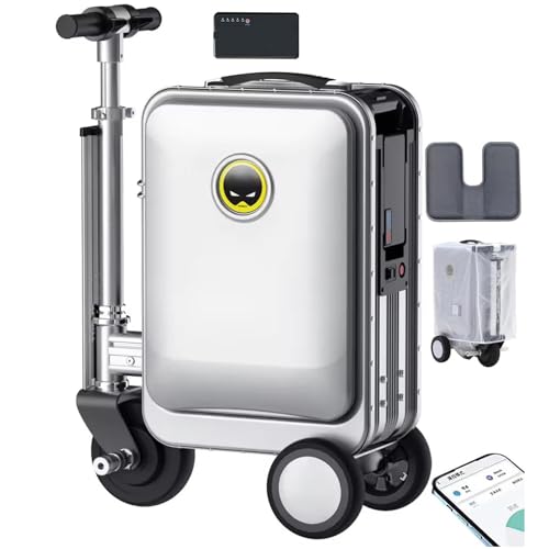 ZWJABYY 20" Smart Rideable Luggage Scooter for Adults,with Telescopic Handle,Load 110 KG,Removable Battery,USB Port,TSA Lock,for Airport Travel A-Silver