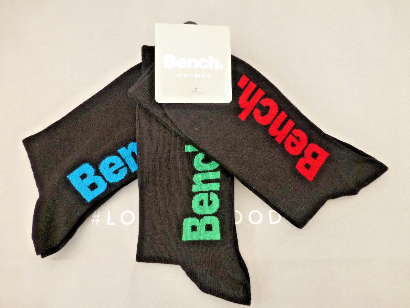 BENCH 3pk Casual Smart Sock Mens Black Colourful Branded UK 9-11 Crew Socks BNIP