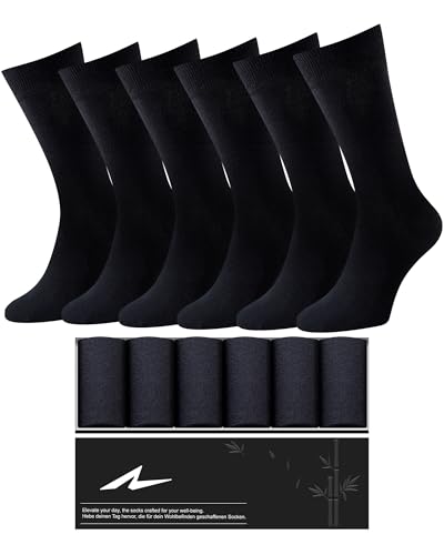 Niorasen 6 Pairs Bamboo Mens Socks, Comfortable Soft Top Crew Socks, Breathable Smart Classic Dress Sock with Gift Box for Everyday Business Casual black 5-9