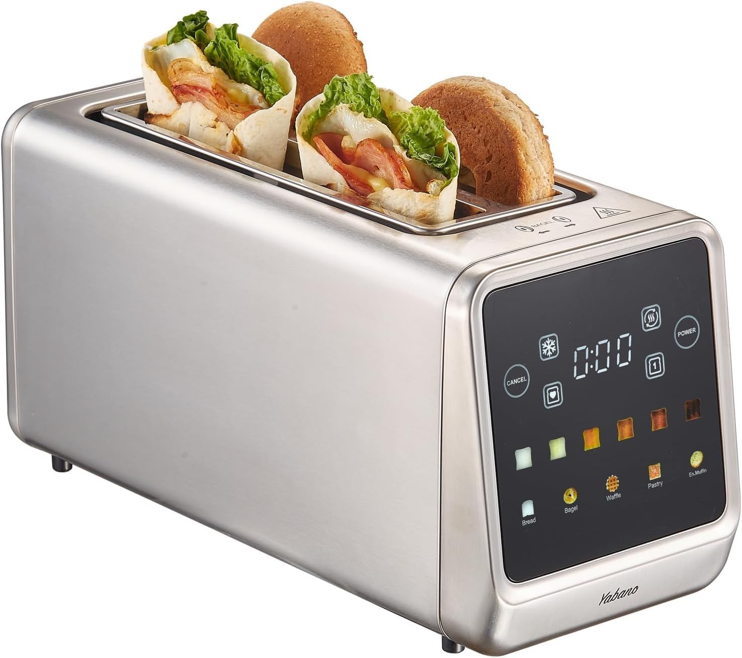 Yabano Smart Toaster 2 Slot 4 Slice Stainless Touchscreen Memory Defrost 1450W