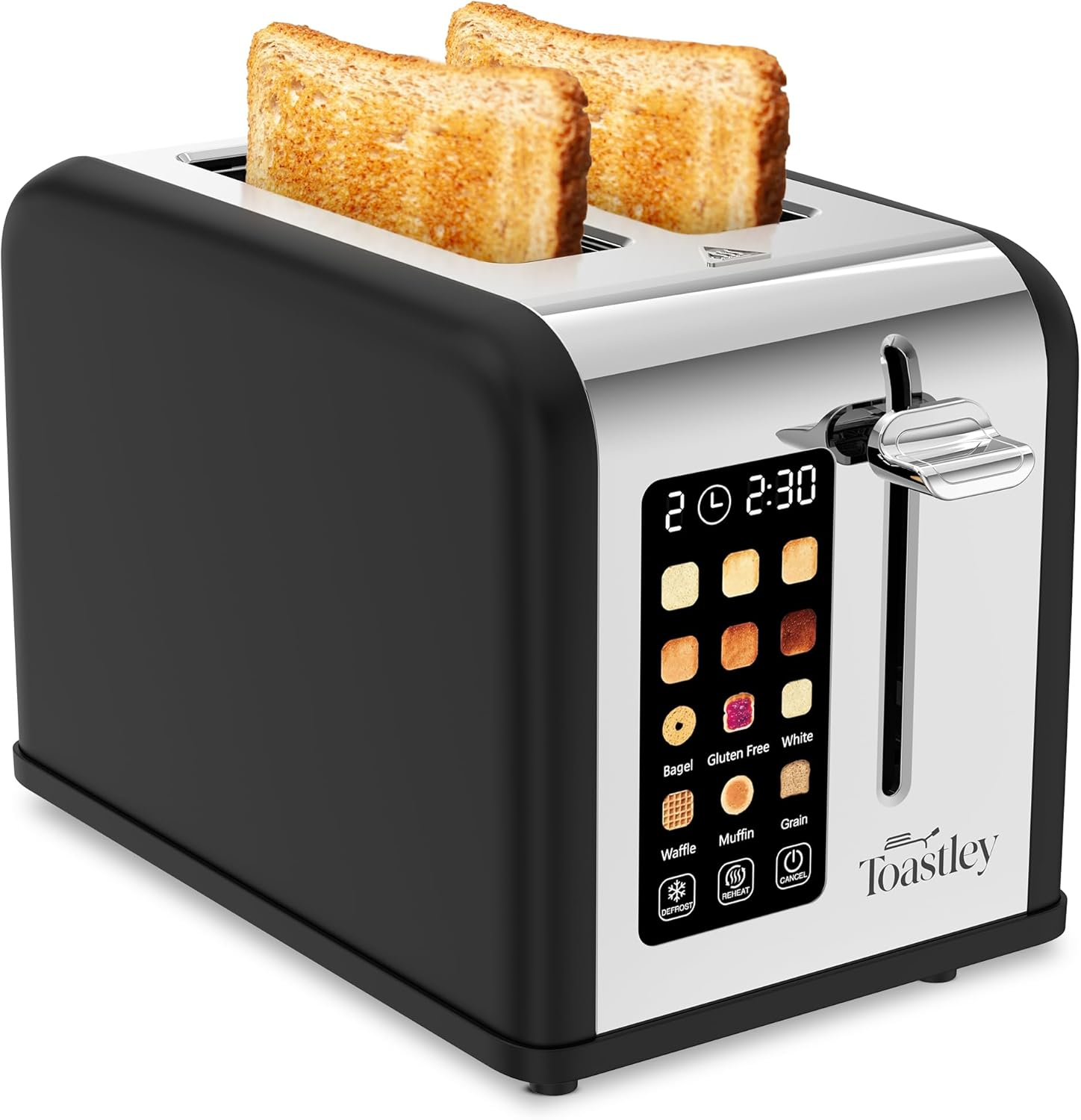 Toastley 2 Slice Smart Toaster, Wide Slots, Touch Control, Digital Timer, Black