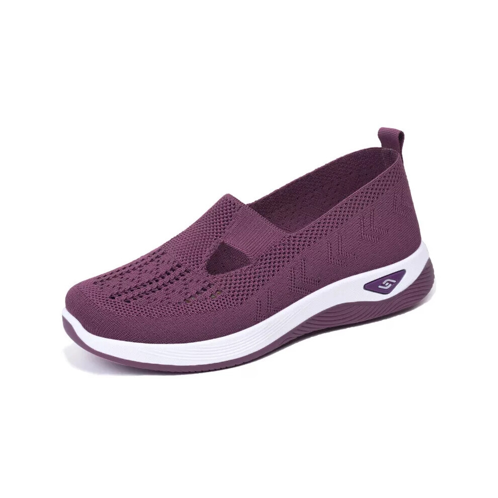 (Deep purple, Tag 39=UK5.5) Ladies Smart Trainers Work Memory Foam Shoes Womens Walking Casual Slip On Size
