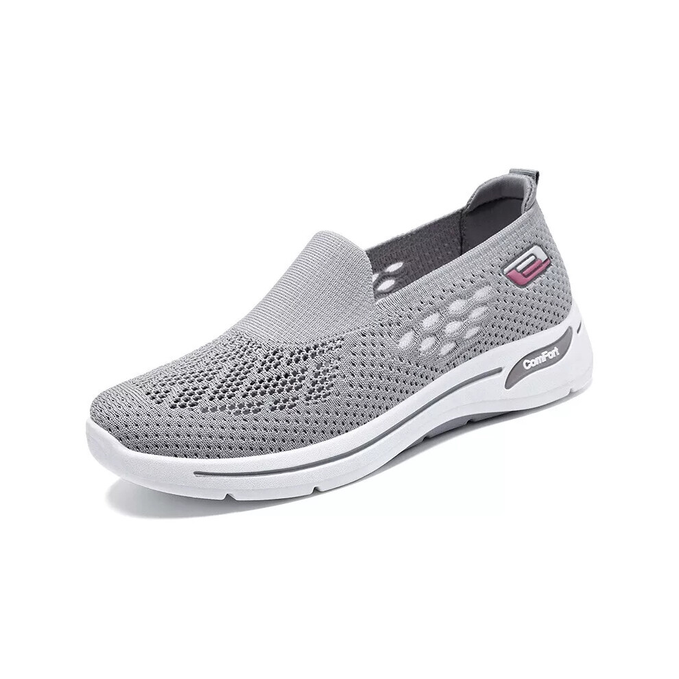 (Grey, 40=UK Size 6.5) Womens Ladies Slip On Memory Foam Casual Smart Walking Work Trainers Shoes Size