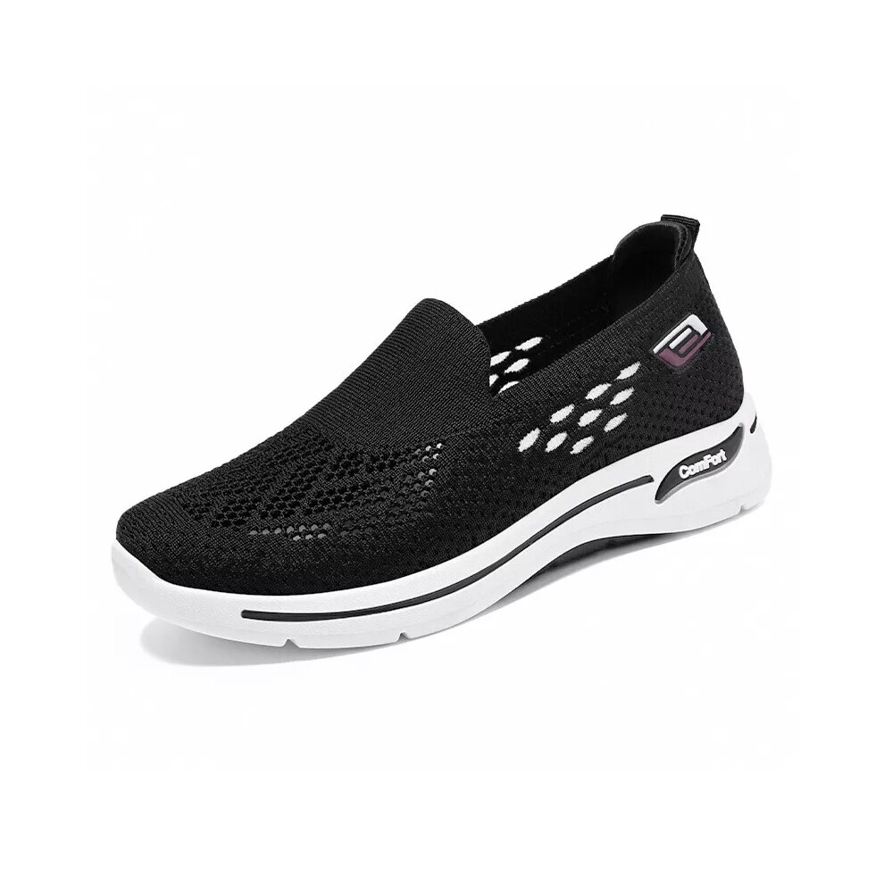 (Black, 40=UK Size 6.5) Womens Ladies Slip On Memory Foam Casual Smart Walking Work Trainers Shoes Size