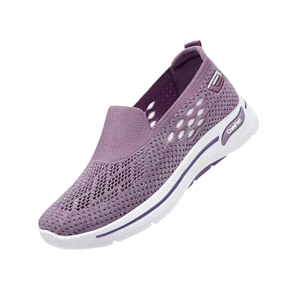 (Purple, 40=UK Size 6.5) Womens Ladies Slip On Memory Foam Casual Smart Walking Work Trainers Shoes Size
