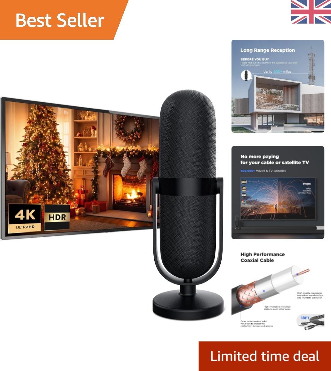 Cutting-Edge Indoor TV Aerial with Amplifier: 650+ Miles, Perfect for Smart TVs