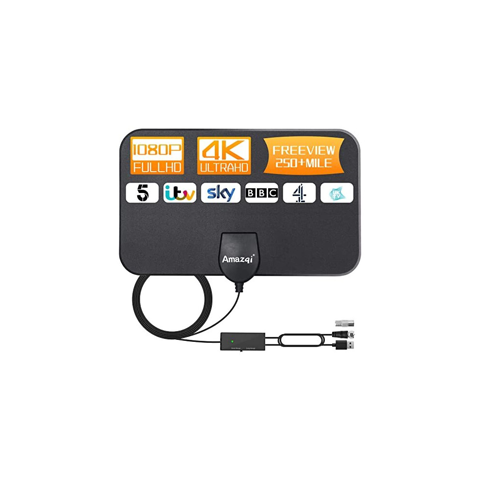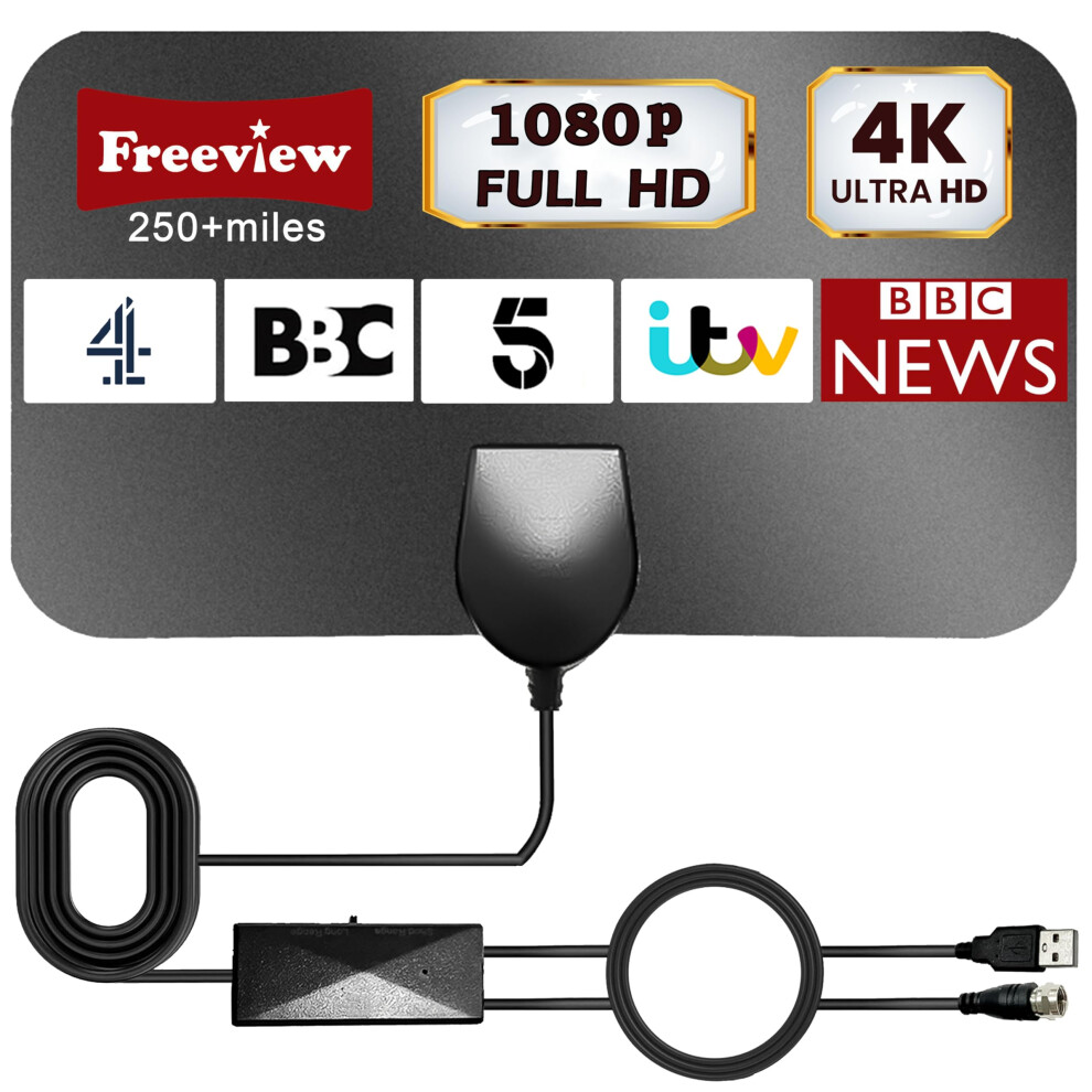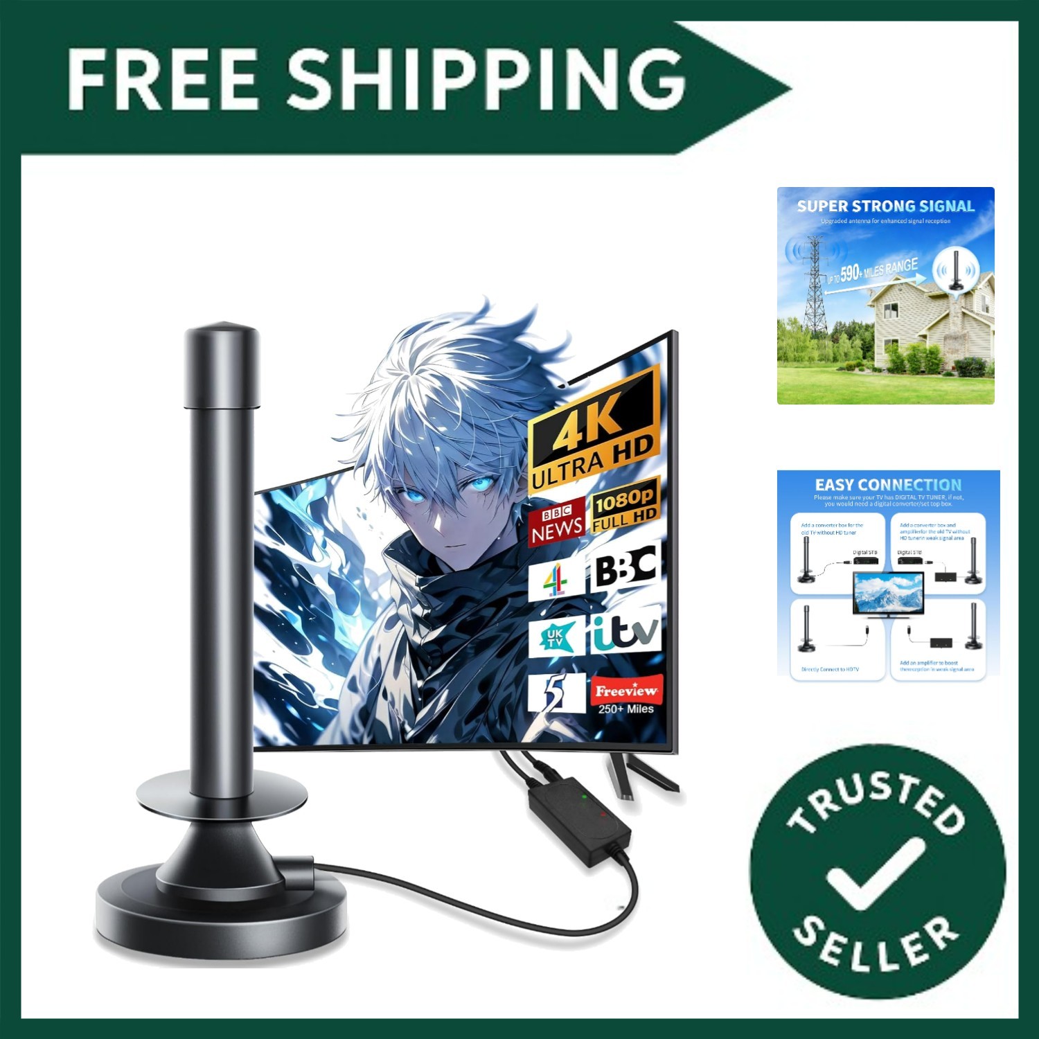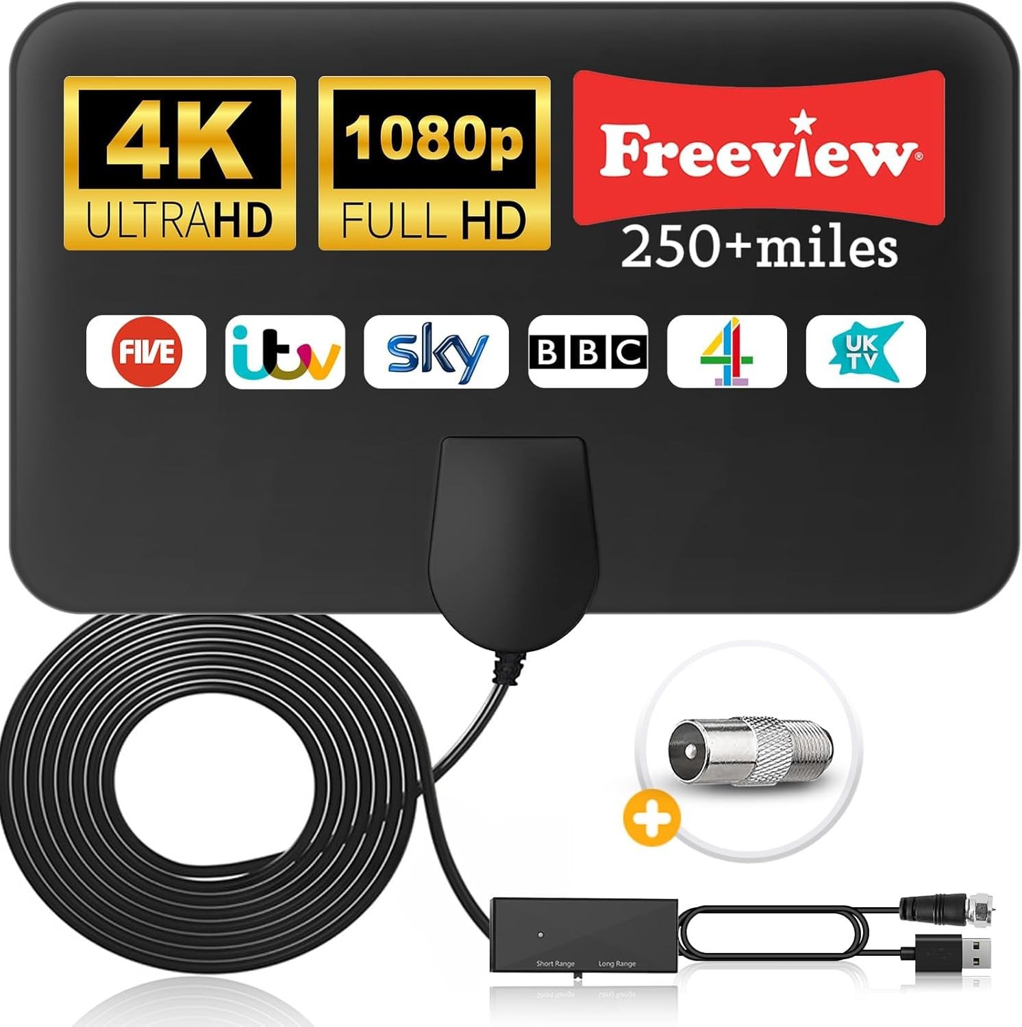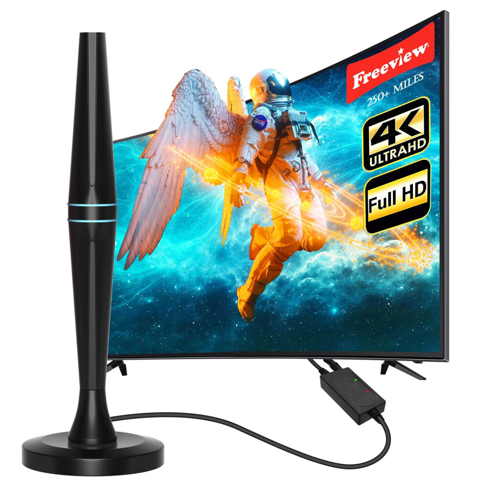 TV Aerial Indoor-Amplified Smart Digital 4K 1080p TV Aerial 250+ Miles Long Range - Support All Older TV's with Amplifier Connector for Freeview