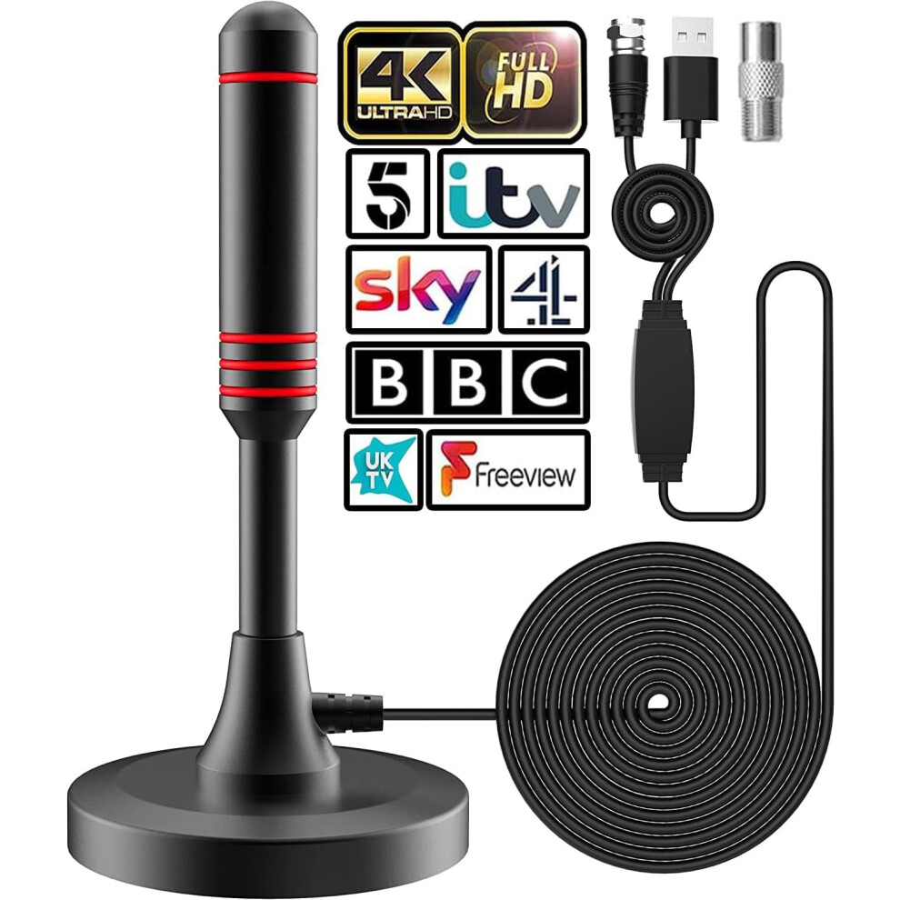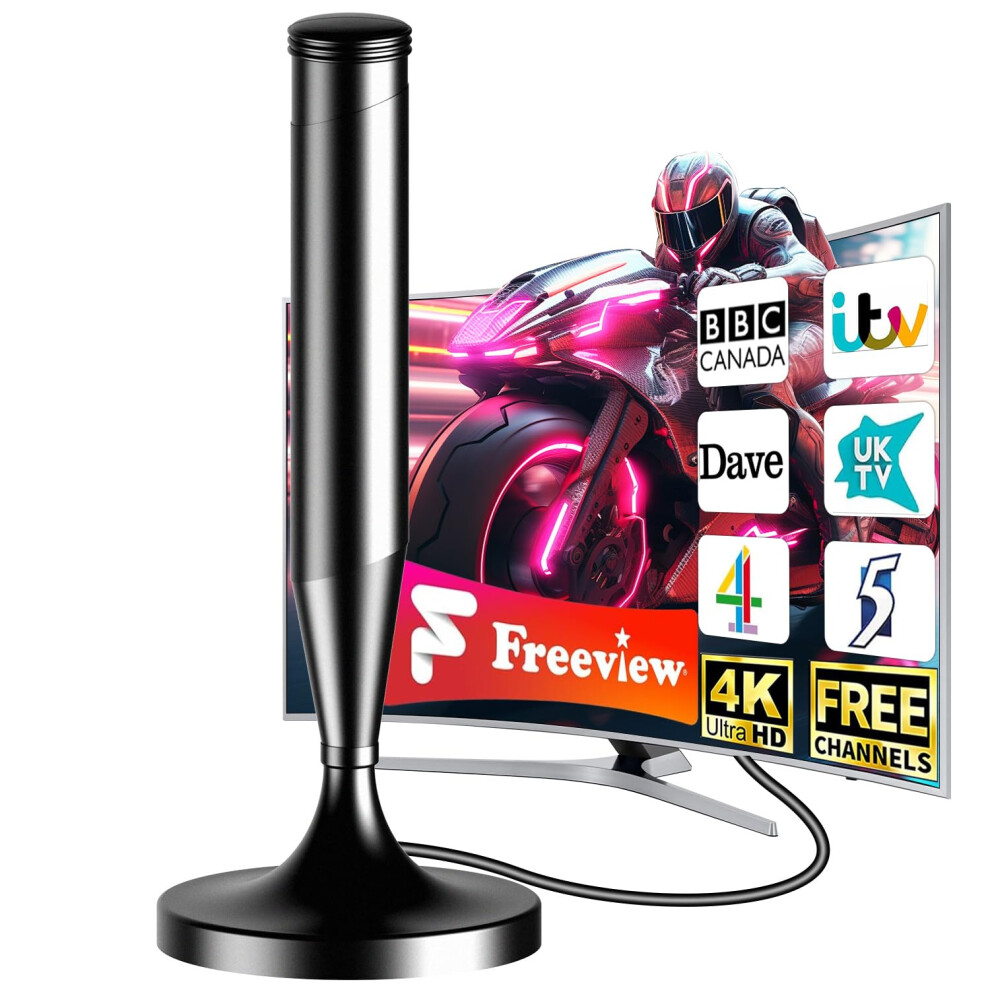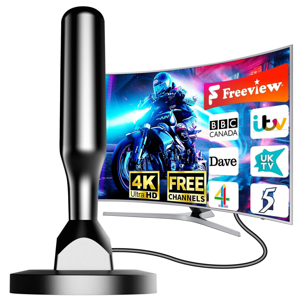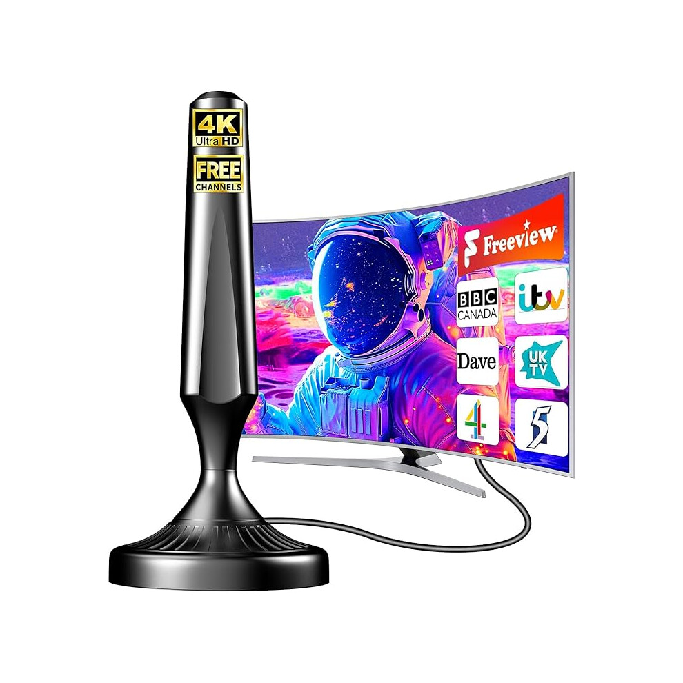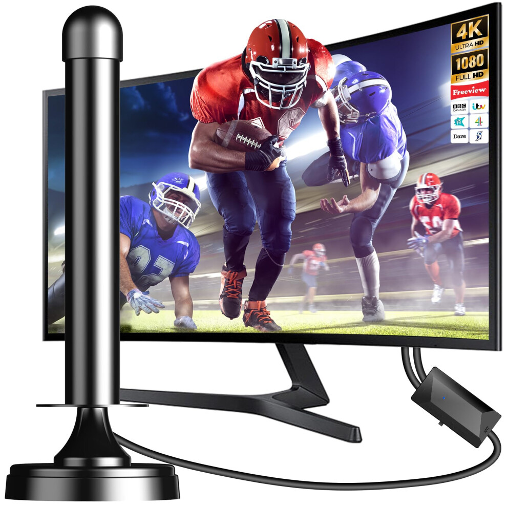 Digital TV Aerial Indoor- Freeview Aerial with Signal Booster, Strong Magnetic Base for Easy Setup, 4K/1080P Smart TV Aerial, Universal Compatibility