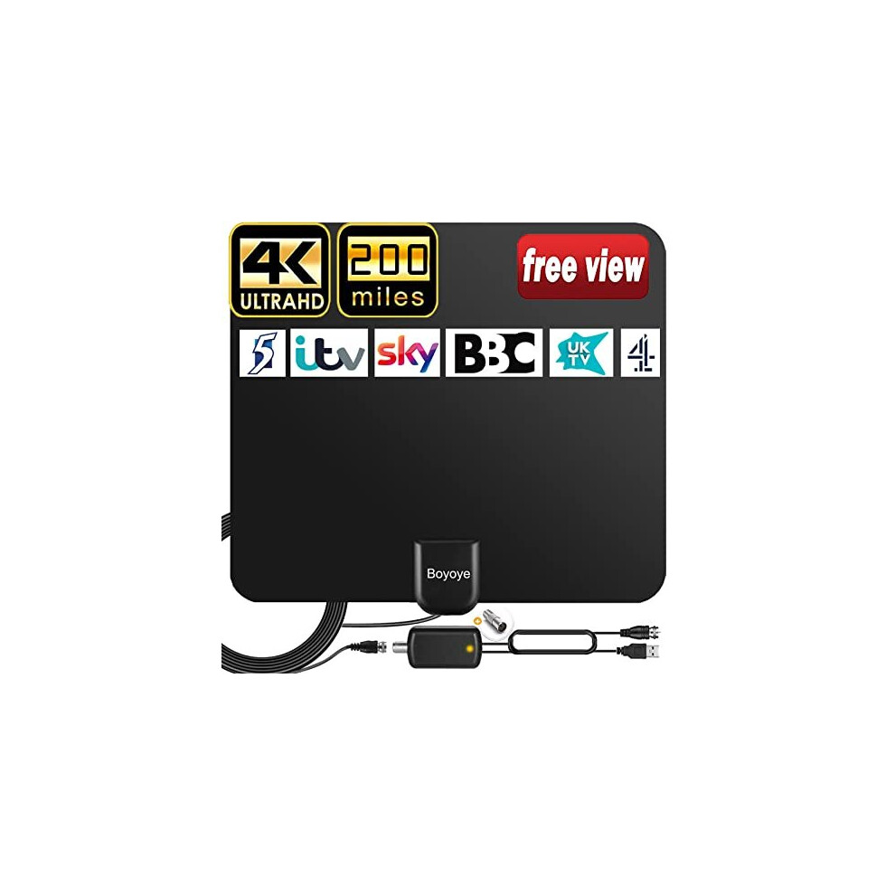 TV Aerial, Boyoye 2023 Newest Indoor TV Aerial Long 200+ Miles Range - Support 4K 1080p HD VHF UHF All TV's - Indoor Smart Amplifier Signal Booster -
