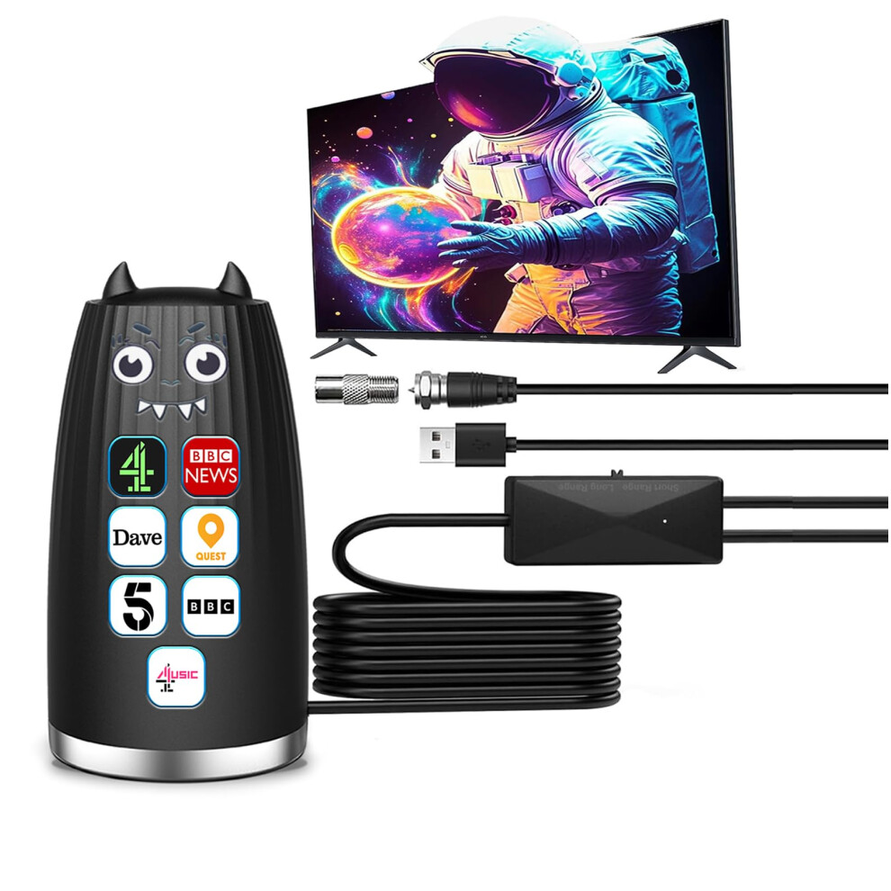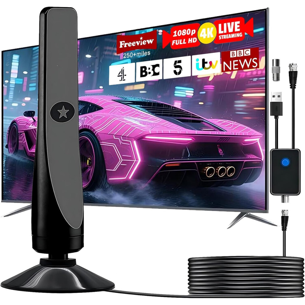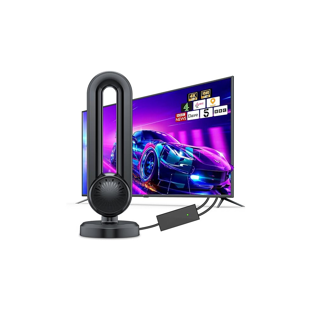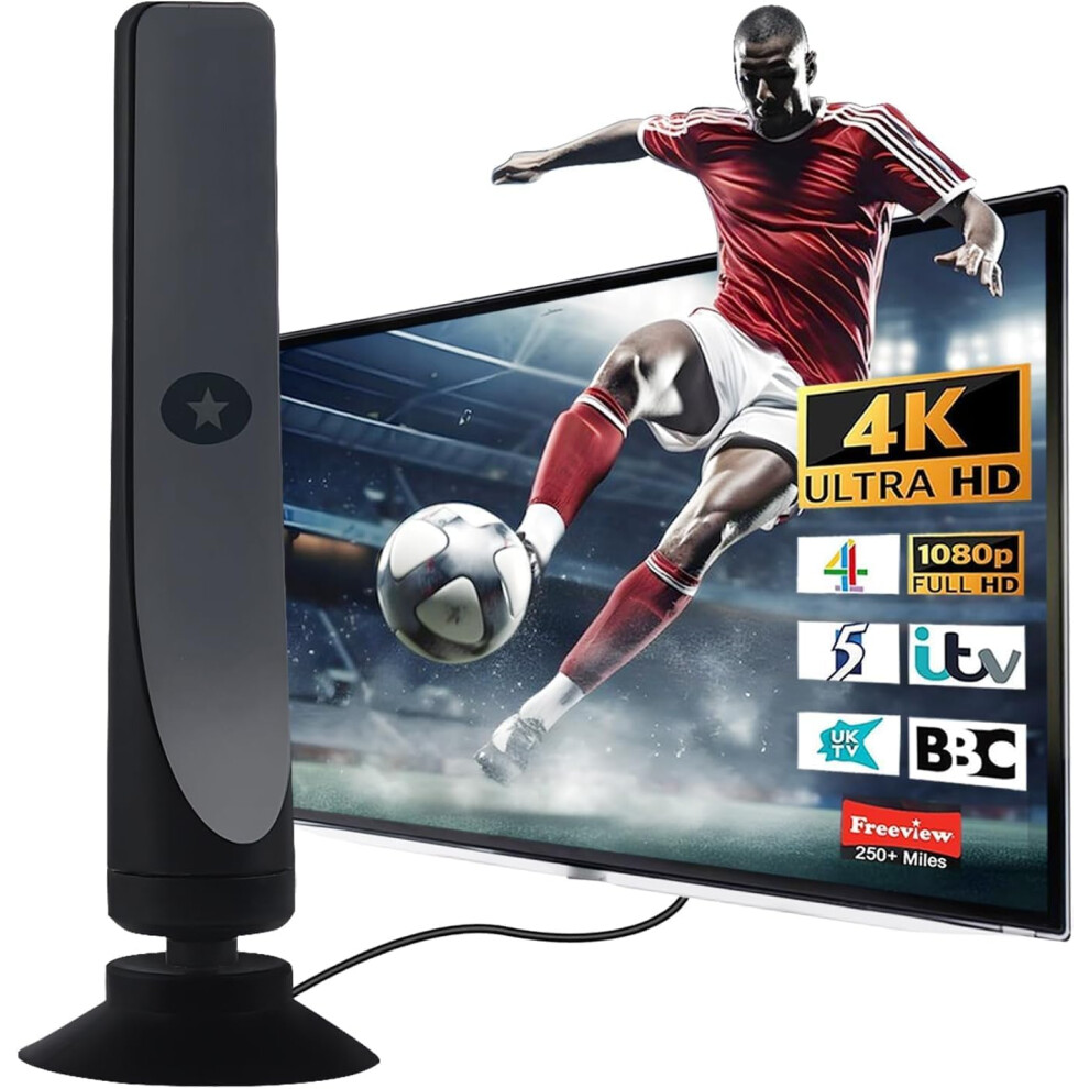Indoor TV Aerial â Freeview Digital HD Aerial for Smart TV, 360 Reception up to 250 Miles, VHF/UHF Signal, Supports 4K 1080p, Easy Setup