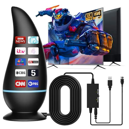 AtomDream Tech Digital TV Aerial Indoor- Freeview with Signal Booster, Strong Magnetic Base for Easy Setup, 4K/1080P Smart Aerial, Universal Compatibility