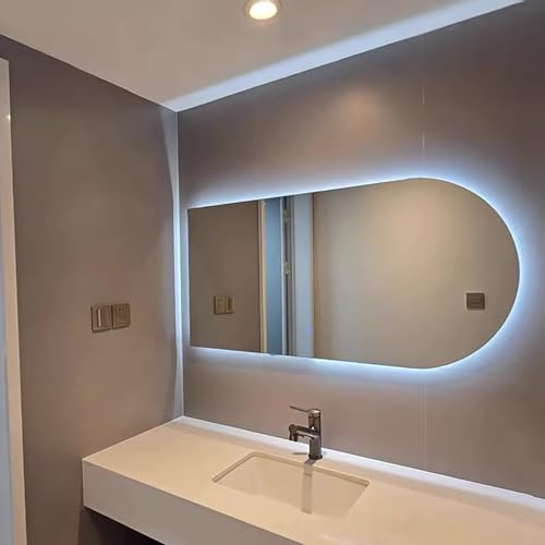 Xxbbyubo Smart Dimmable Makeup Mirror with Lights, Modern Anti-Fog 3-Color Illuminated Wall Mirror Arch 40/51In, for Home Decor(Cut left,24"*48")