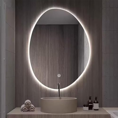Xxbbyubo Frameless Smart Wall Mirror with Lights, 3-Color Dimmable, Touch Anti-Fog Wall Mounted Bathroom Makeup Mirror, 32" 36" 40" Asymmetrical Oval(Positive Hanging,70x50cm)
