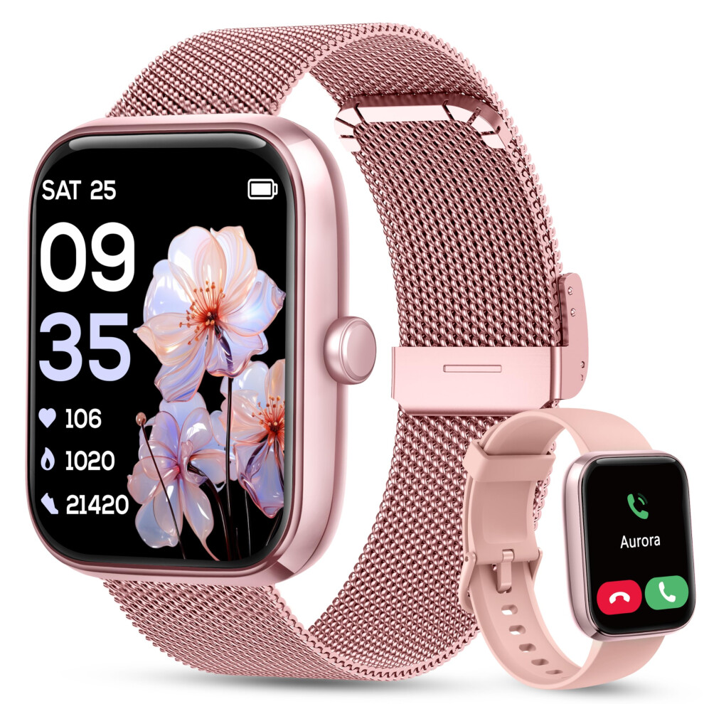 KALINCO Smart Watch Women [2 Bands, 44mm case] 1.83" Alexa Fitness Tracker, Heart Rate, Sleep, Stress & SpO2 Monitor, IP68 Waterproof Smartwatch, Make/Answer Calls, Compatible with iOS & Android