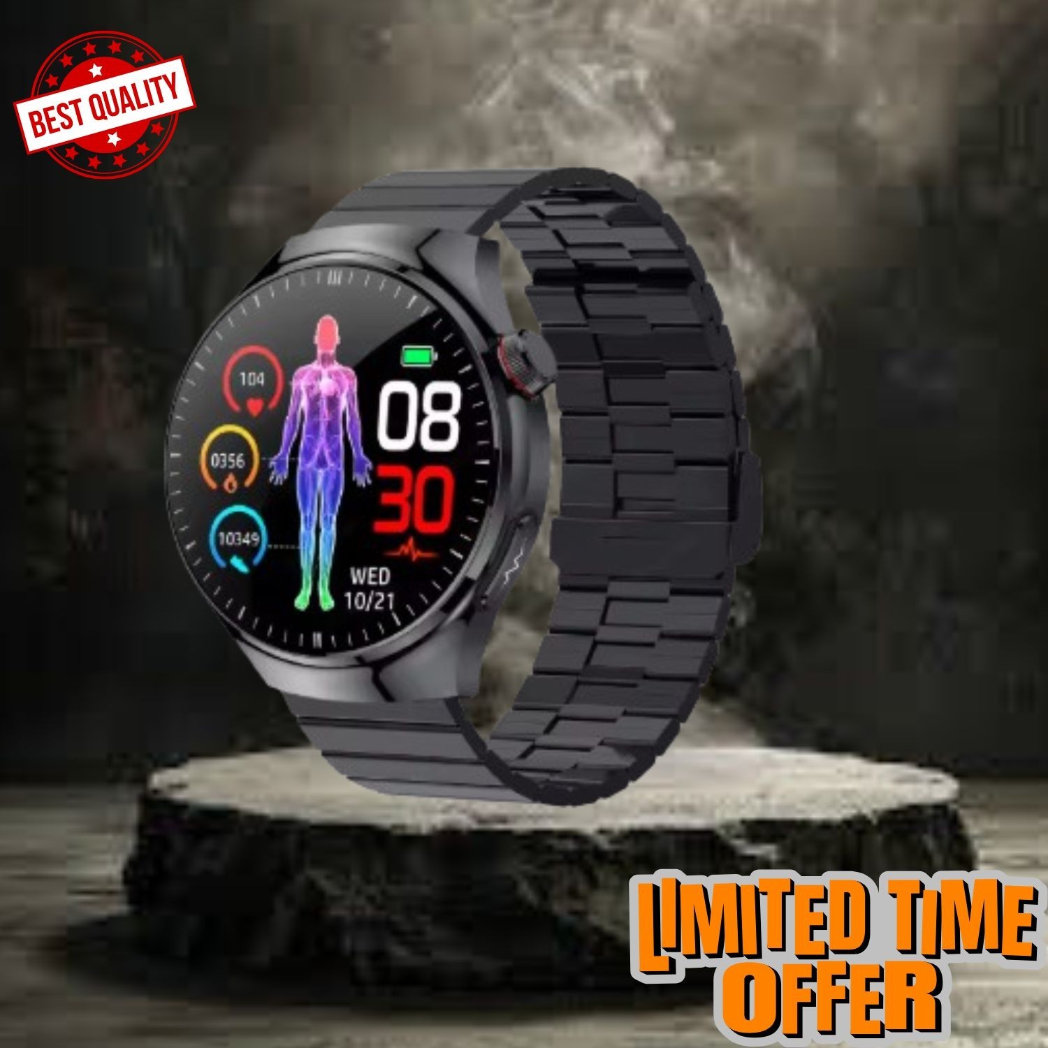 GOPLUSHTOY (Black Steel) Smart Watch ECG Blood Pressure Oxyegn Health Monitoring Bluetooth Calling Men Women Smartwatch