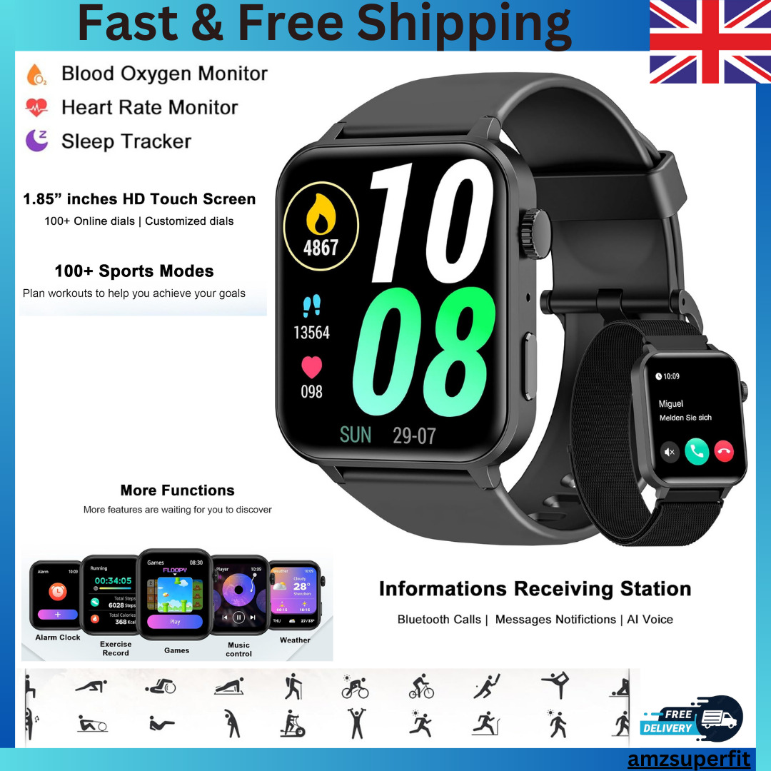 UK 2025 New Medical Grade Smart Watch Blood Pressure Oxygen Heart Rate Bluetooth