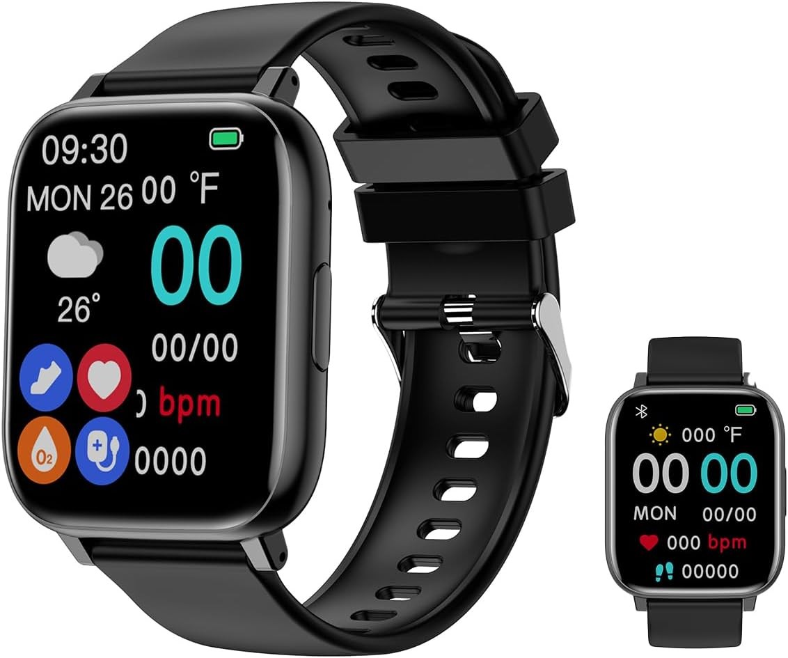 Popglory Smart Watch, Fitness Tracker with Blood Oxygen, Blood Pressure, Heart Rate Monitor, IP67 waterproof Smartwatch Fitness Watch Smart Watch for