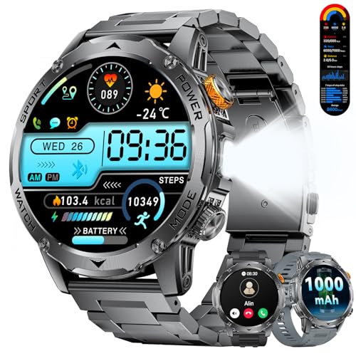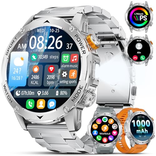 Smart Watch for Men (Bluetooth 5.2 Calls) with Flashlight, 1.75"HD Display/1000mAh Long Battery Life, Fitness Tracker with Heart Rate/Sleep Monitor/IP68/120+ Sports Modes for iOS Android,3 Bands