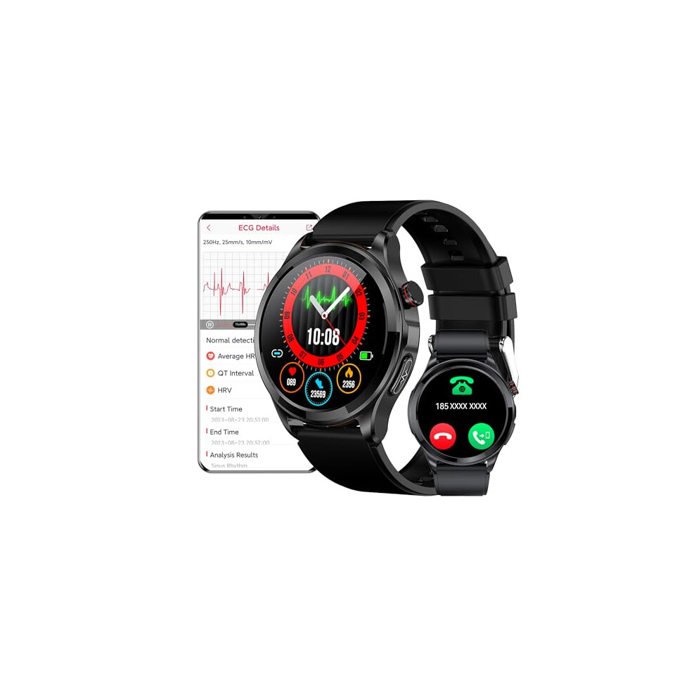 (Black) Blood Glucose + ECG + Bluetooth Call Healthy Smart Watch Sport Smartwatch Men