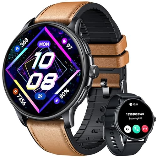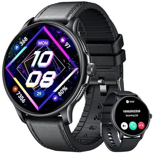 AIMAISEN Smart Watch for Men, 1.28" Touch Screen Bluetooth Smartwatch with Heart Rate Sleep Monitor, Activity Fitness Tracker Pedometer SMS Call Notification for iOS Android (Black,Leather Strap)