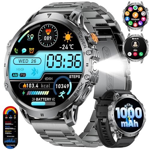 Smart Watch for Men (Bluetooth 5.2 Calls) with Flashlight, 1.75"HD Display/1000mAh Long Battery Life, Fitness Tracker with Heart Rate/Sleep Monitor/IP68/120+ Sports Modes for iOS Android,3 Bands