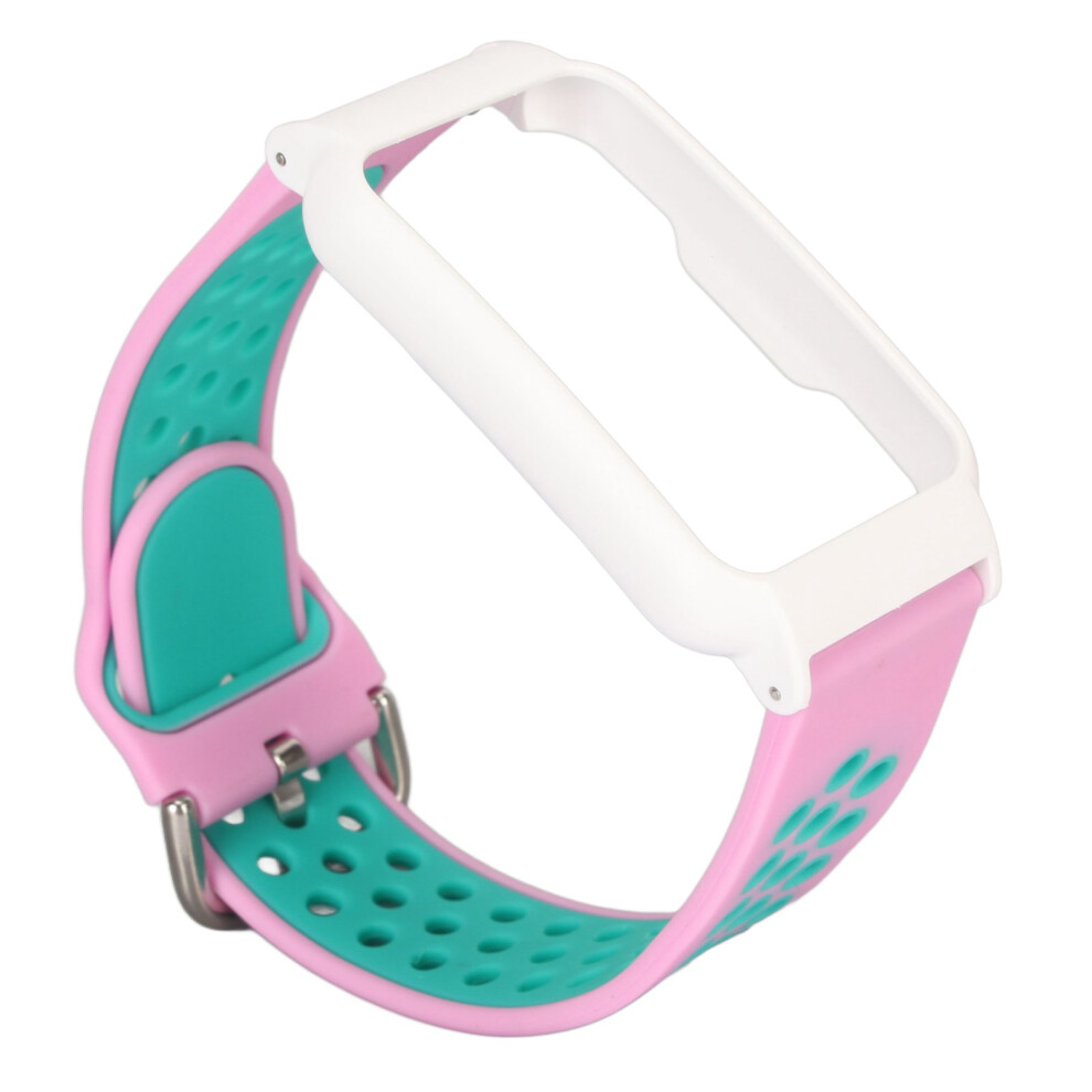 (Pink Green + White Shell) 20mm Silicone Watchband for OPPO FREE Smart Watch Pink Green White