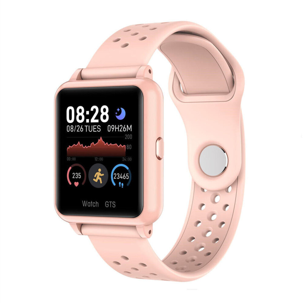 P8 Full Touch Screen Heart Rate Blood Pressure Oxygen Monitor bluetooth Music Smart Watch PINK COLOR