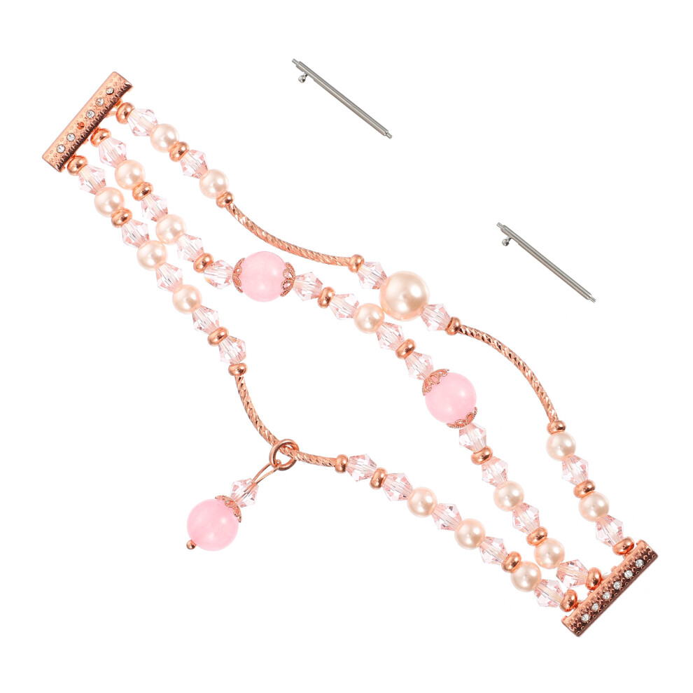 1Pc Agate Beaded Smart Watch Strap Pink Replacement Band for Watches