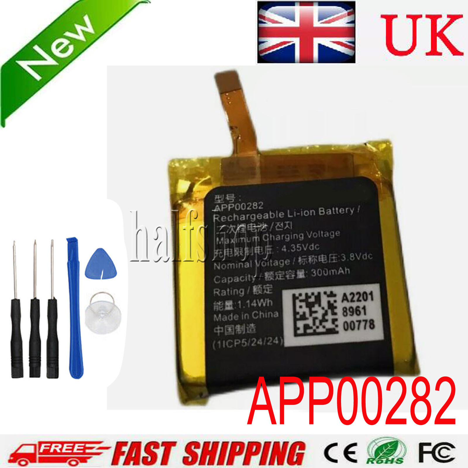 APP00282 battery 300mAh3.8v For Apack LV Tambour Horizon 2nd Gen SmartWatch
