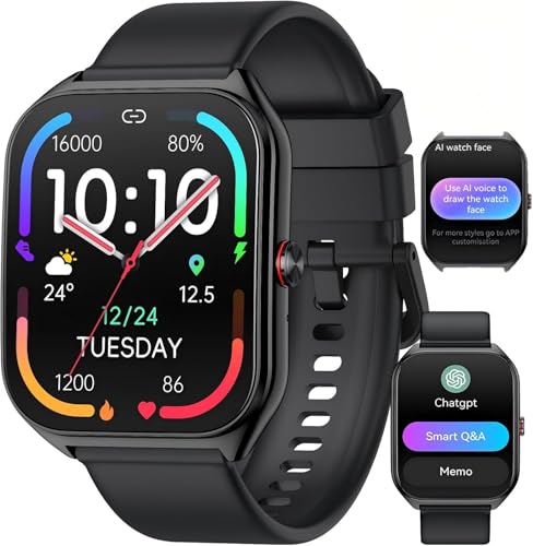 AI Smart Watch, SmartWatch with ChatGPT AI Voice Assistant, 1000mAh Fitness Tracker 80-Day Standby Time, 1.96" HD Touch Screen Fitness Watch with IP68 Waterproof/Heart Rate/Sleep Monitor for Men Women