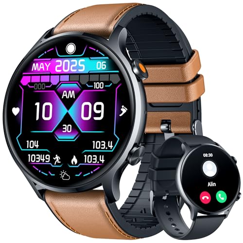 Smart Watch Bluetooth Phone Call Leather Smartwatch with Heart Rate Blood Pressure Monitor Pedometer IP67 Waterproof Fitness Tracker for Android iOS