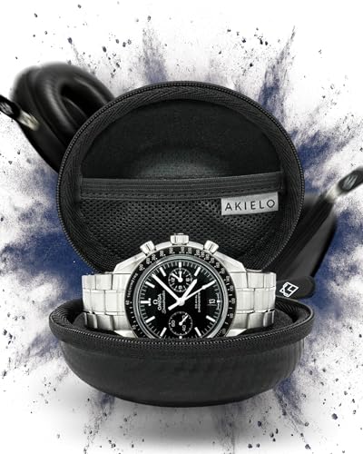 AKIELO Watch Case – Watch Travel Case with Cleaning Cloth and Gift Box – Fits Mens and Womens Wristwatches and Smart Watches up to 54mm (Black Carbon Edition)