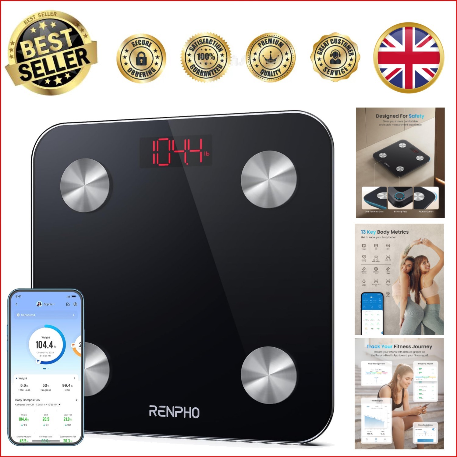 Smart Body Weight Scale for Health Monitoring with Body Fat Muscle Mass Measurement, Bluetooth App Connectivity, LED Display