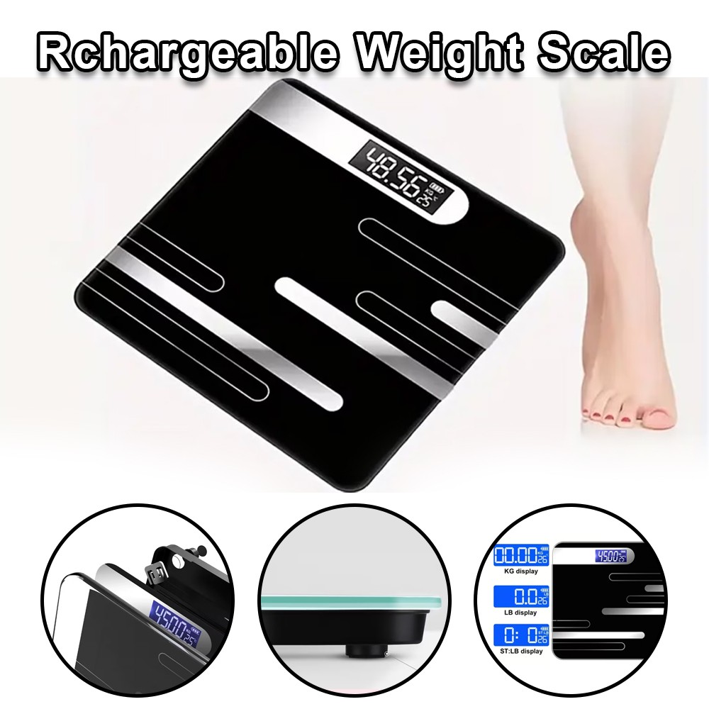 Smart Body Weight Scale with LED Display, Rechargeable BMI and Fat Analysis Digital Bathroom Scale