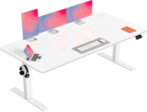 Flamaker Standing Desk 180x80cm Height Adjustable Desk with Splice Board Standing Table with Hook Office Table with Memory Smart Pannel,White
