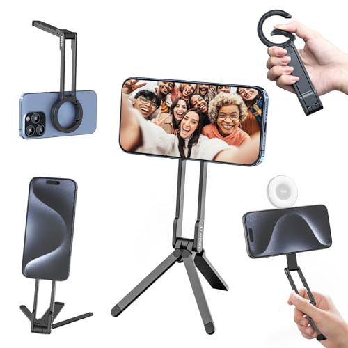 ULANZI MA30 Magnetic Phone Tripod Stand, Aluminum Mini Selfie Stick, Maglock Carabiner-Mounted Quick Release, Foldable Smartphone Stand, Pocket Tripod Compatible with iPhone 17 16 15 14 13 12 Magsafe