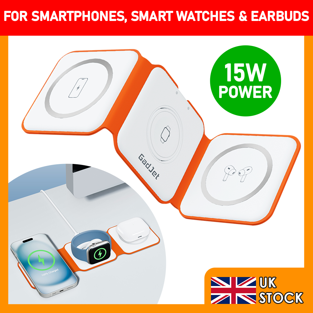 3-in -1 GadJet Foldable Wireless Charging Station For Smartphone, Watch, Earbuds
