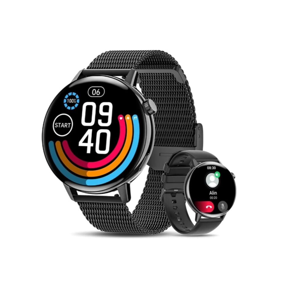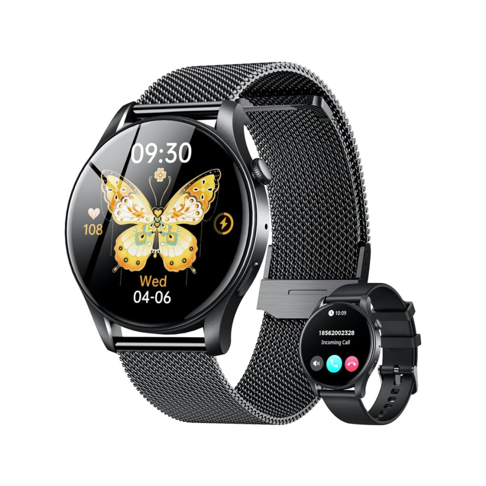 (Black Steel) Smart Watch for Women Bluetooth Call Blood Oxygen Smartwatch for iPhone Android