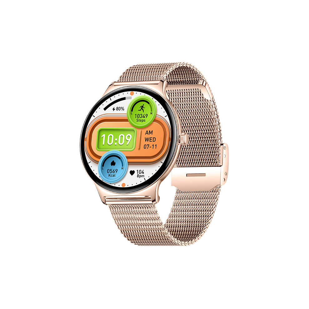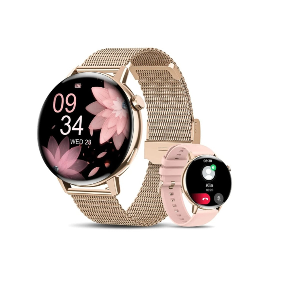 HIRREO Smart Watch Women for iOS Android Phone Call 7.9mm Thin 1.32" HD AMOLED Touchscreen Smartwatch Ladies Rose Gold,2 Straps,Calorie,100+ Sports Modes/Heart Rate/Sleep Monitor/Menstrual Cycle