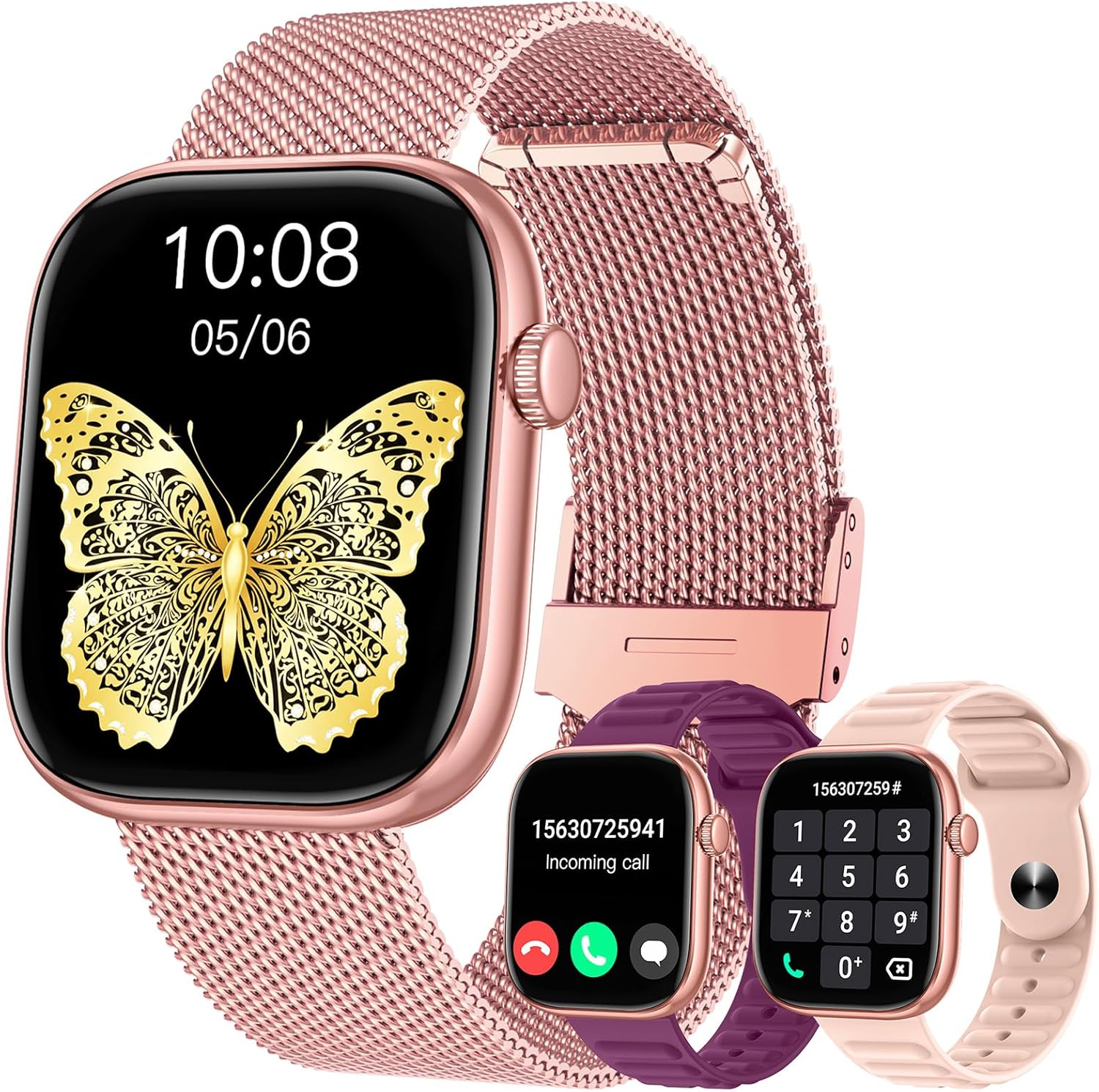 Smartwatch for Android and iPhone with Call Function, 24H Health Tracking, Rose Gold Fitness Tracker