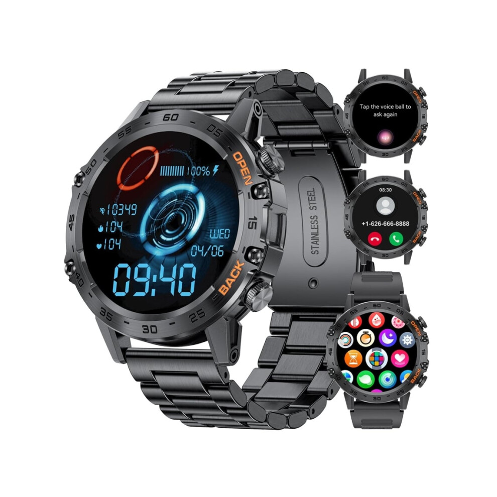 Chronus Smart Watch Men Bluetooth Phone Call for Android iPhone 400 mAh Battery 1.39" HD Screen Outdoor Sport Fitness Tracker Smartwatch Black Steel