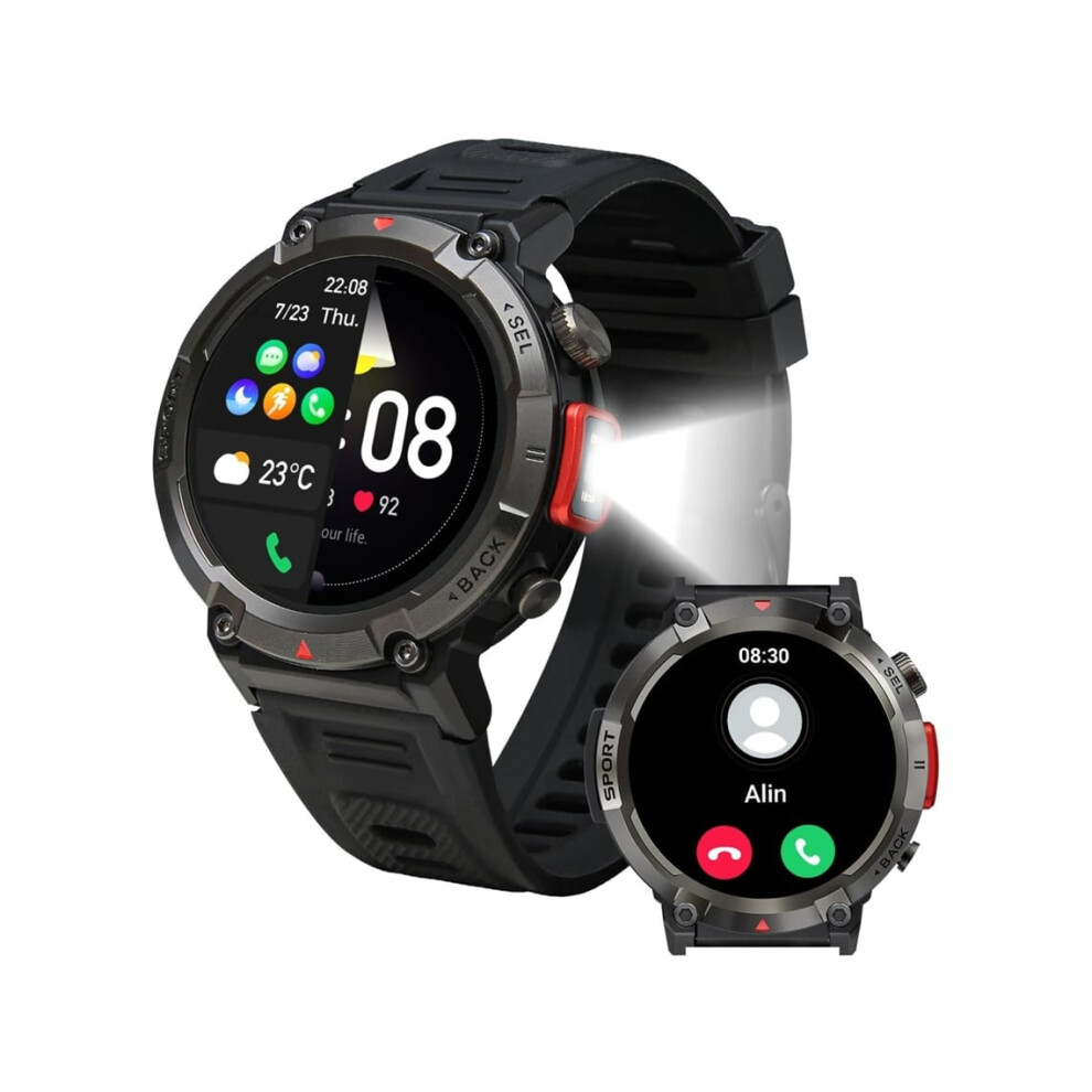 Smartwatch for Men, Answer/Dial Calls, Tactical Bluetooth Smartwatch for Android and iPhone, Waterproof, Foot Tracker
