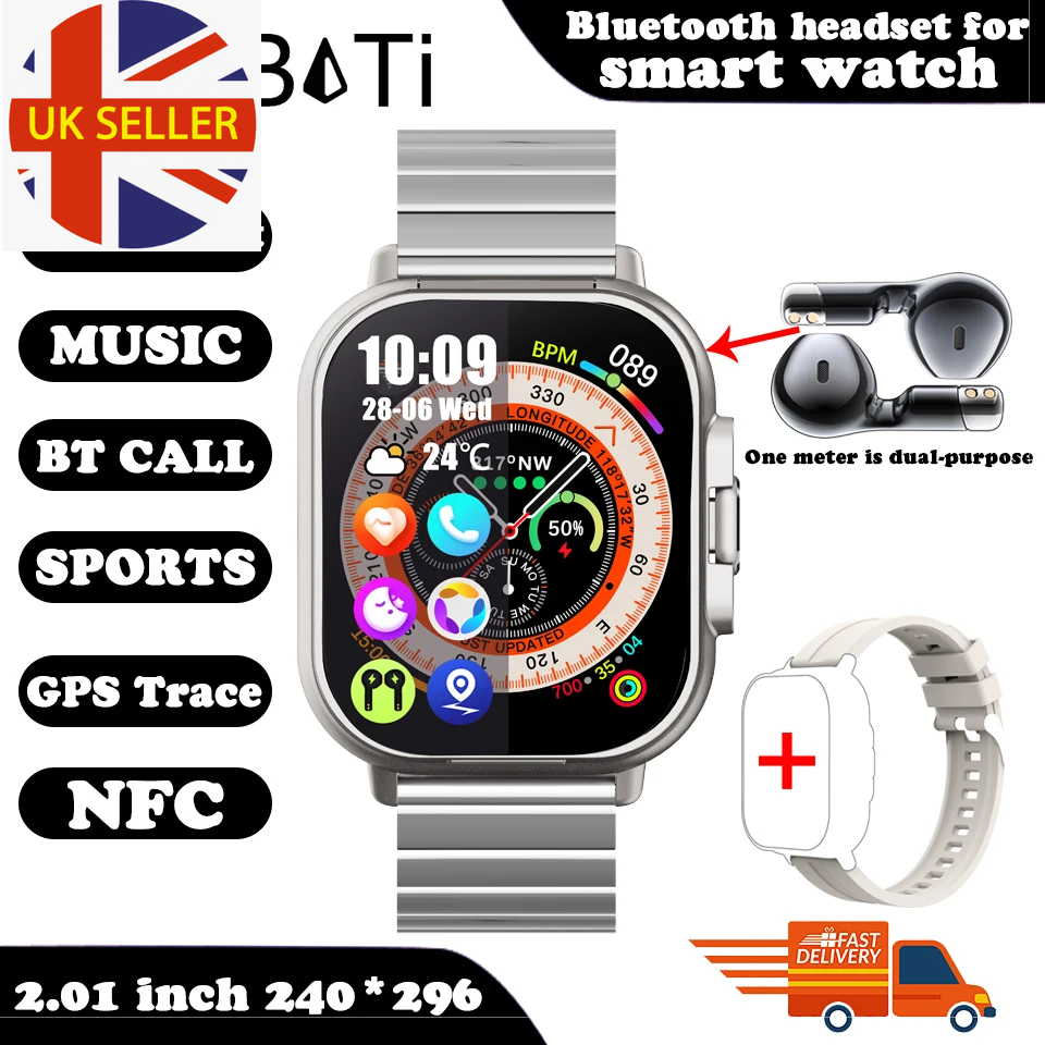 2.01in TFT Smartwatch With Earbuds 2 In 1 NFC Smart Sports Watch Wireless B SG