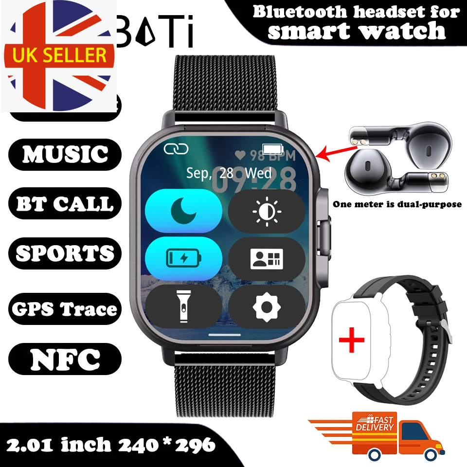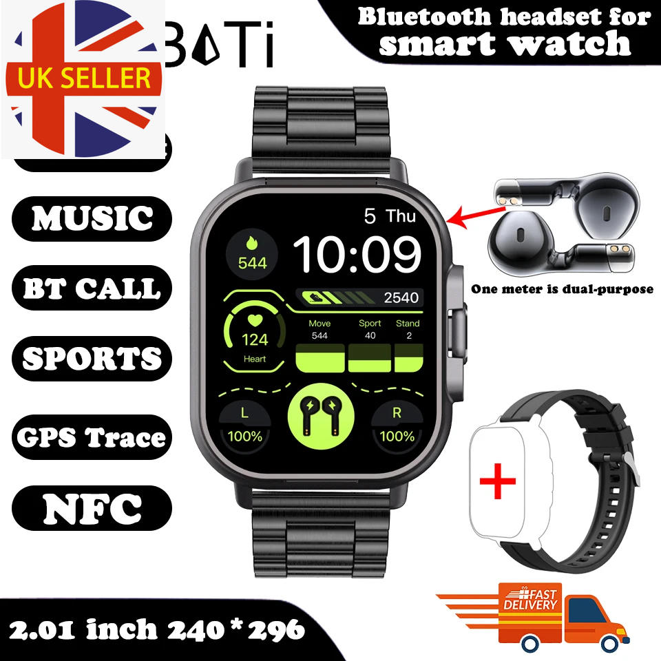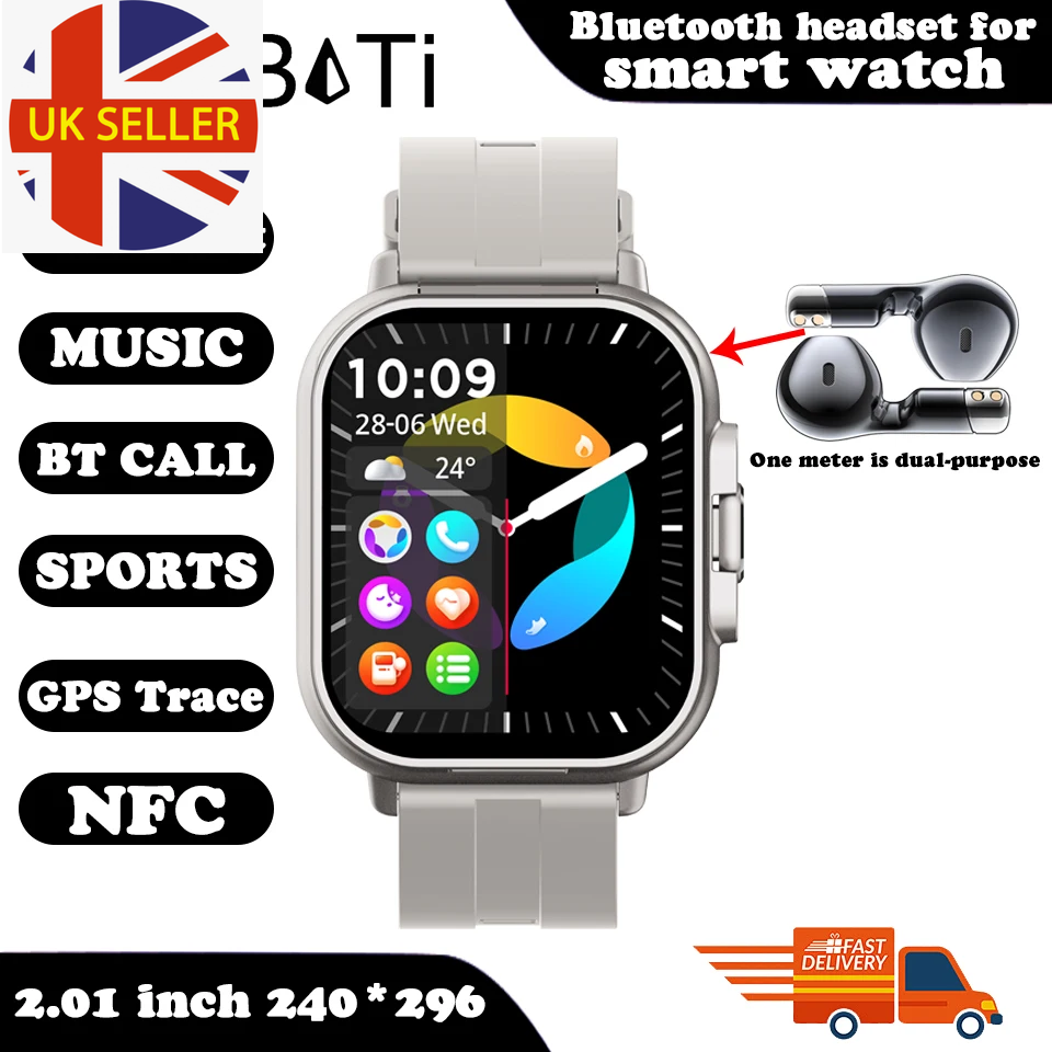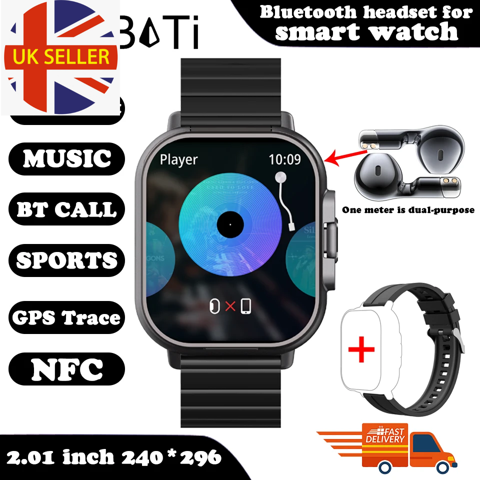 New 2.01in TFT Smartwatch With Earbuds 2 In 1 NFC Smart Sports Watch Wireless BT