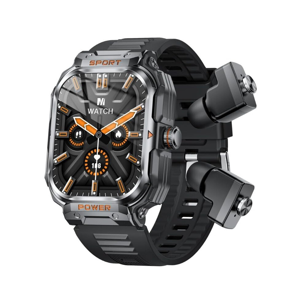 2-in-1 Smartwatch with Bluetooth Earphones, NFC, Long Battery, Sports Modes, Black Silicone