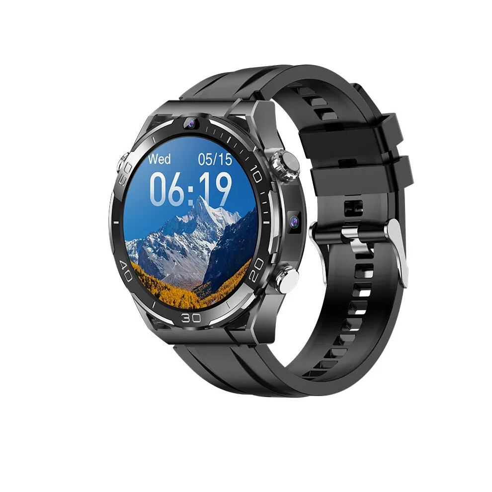 4G SIM Card Smartwatch For Men Black With HD Dual Camera, Video Calls, Large Display, Storage, Fitness Tracking