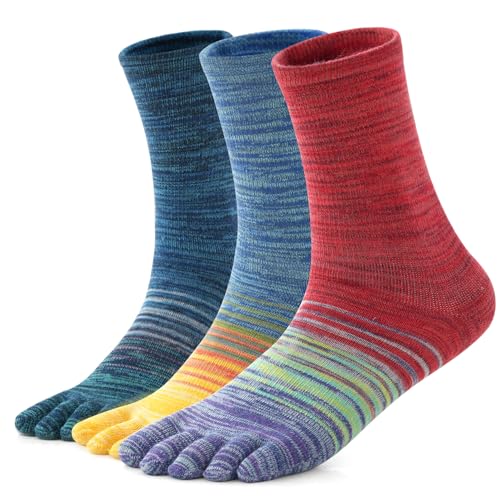 likloks Crew Toe Socks for Men Women – Athletic Running Hiking Socks with toes - Comfortable Soft Breathable, Rainbow - Medium